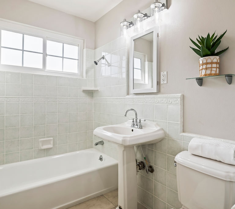 Glistening hardwood floors, two sun tunnels, and designer-selected interior paint fill the home with natural light. Plus, updated bathrooms feature fresh white cabinets and modern fixtures, and the garage has lofted storage and a practical workbench for extra convenience.